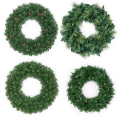 Adventskränze mit Weihnachtsschmuck und Lichter, verfügbar in verschiedenen Muster.
