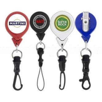 Az egyedi kihúzható kártyatartók automatikusan visszahúzódnak, miután a tekercsből kihúzott húrt elengedték. Az egyedi kihúzható kártyatartók kiegészítők széles választékával együtt állnak rendelkezésére, mint például a jelvény szíjak, jelvény csipeszek, kulcstartók, forgatható akasztók, rugós akasztók, kattanó csavarok, stb. A visszahúzható jelvény tekercsek vagy visszahúzható kitűző tartók azonosító jelvények, kulcsok, parfümös üvegcsék, pincérek üvegbontói és egyéb kis tárgyak hordozására alkalmasak.