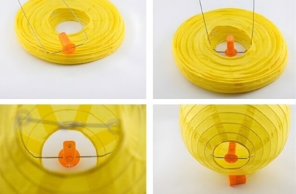 Lampioane hartie rotunde cu coaste neregulate. Se deschid cu „C” expander de sârmă.